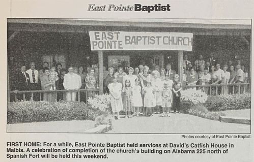 God opened the door in Malbis, AL and David's Catfish House was rented as the meeting place for Sunday morning services. The first meeting was on July 31, 1994 with 44 people in attendance. Sister churches loaned or donated items such as a keyboard, songbooks, and children's chairs. Nine people joined the mission church that day and a new church had officially been born.